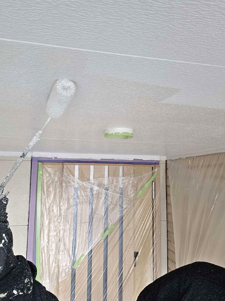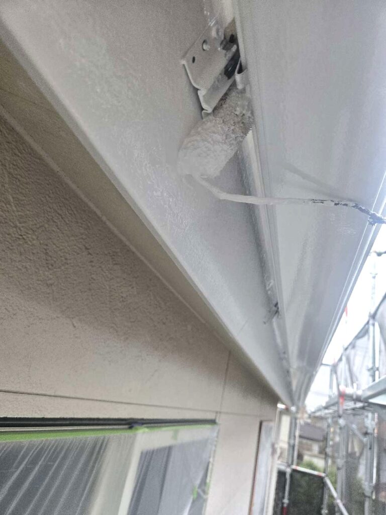 雨樋、破風板、軒天といった付帯部の塗装は、住まいの「美観の完成度」を決めます。外壁が綺麗になっても、ここが色あせていると全体が古く見えてしまいます。雨樋や破風板には、金属や塩ビに適した専用塗料を使用し、細かい凹凸まで刷毛で塗り上げます 。特に湿気が溜まりやすい軒天には、防カビ・透湿性に優れた塗料を選定。家全体のカラーバランスを整えながら、細部まで徹底的に保護することで、統一感のある美しい仕上がりを実現しました。