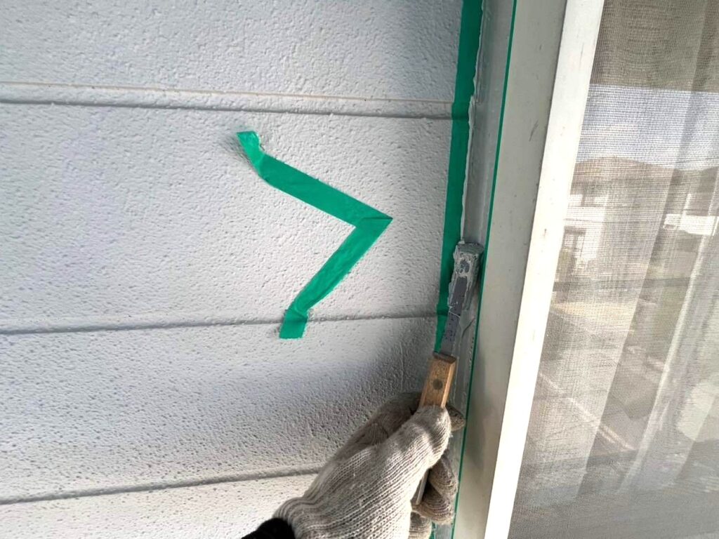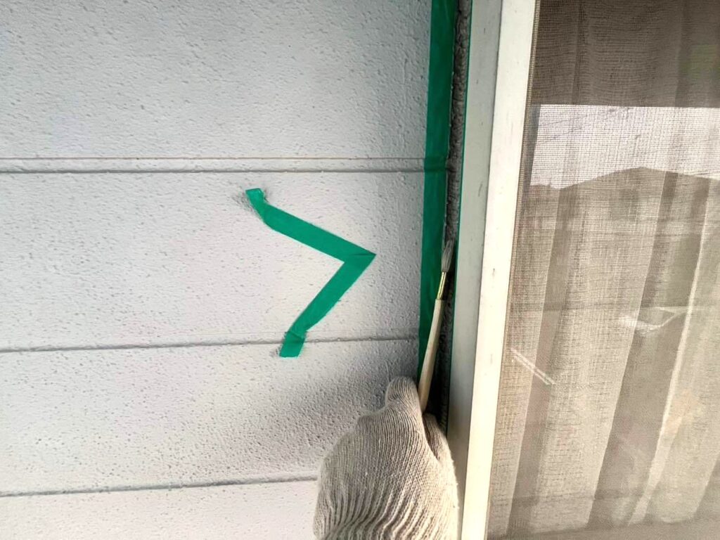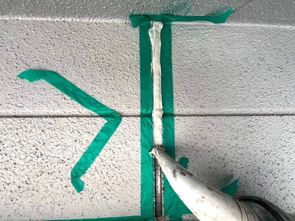 サッシ周りは雨水が入りやすく、建物内部に影響が出やすい重要な箇所です。今回は既存のコーキングの上から増し打ち工法で新しいコーキングを充填しました。隙間や段差をしっかりと埋めることで、厚みと密着性が増し、耐久性を高めつつ外観を整えます。
