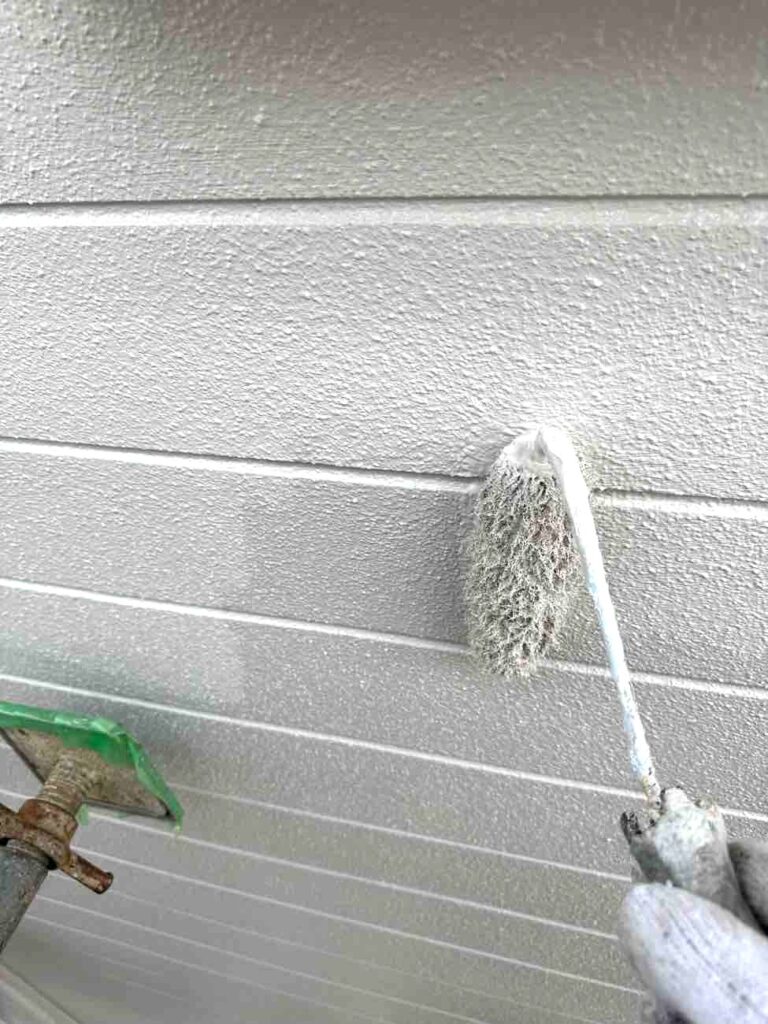 施工の第一歩として、安全かつ作業しやすい足場をしっかり組み立てました。足場は職人がスムーズに作業できるだけではなく、外壁や屋根全体を均一に仕上げるための大切な基盤です。その後、高圧洗浄で外壁の汚れやほこり、古い塗膜のわずかな残りも丁寧に洗い落としました。塗装前に表面をきれいにすることで、塗料の定着を高め、仕上がりの美しさと耐久性を確保します。下準備をしっかり行うことで、安全性と仕上がりの品質を両立できる重要な工程です。