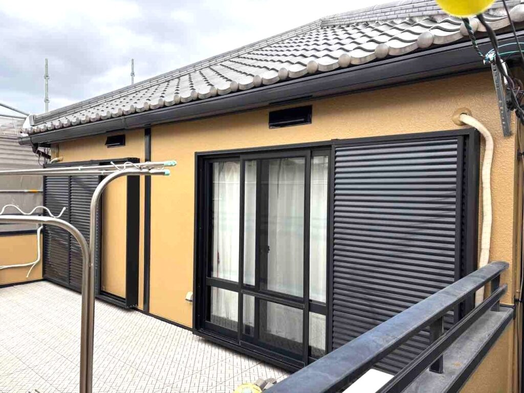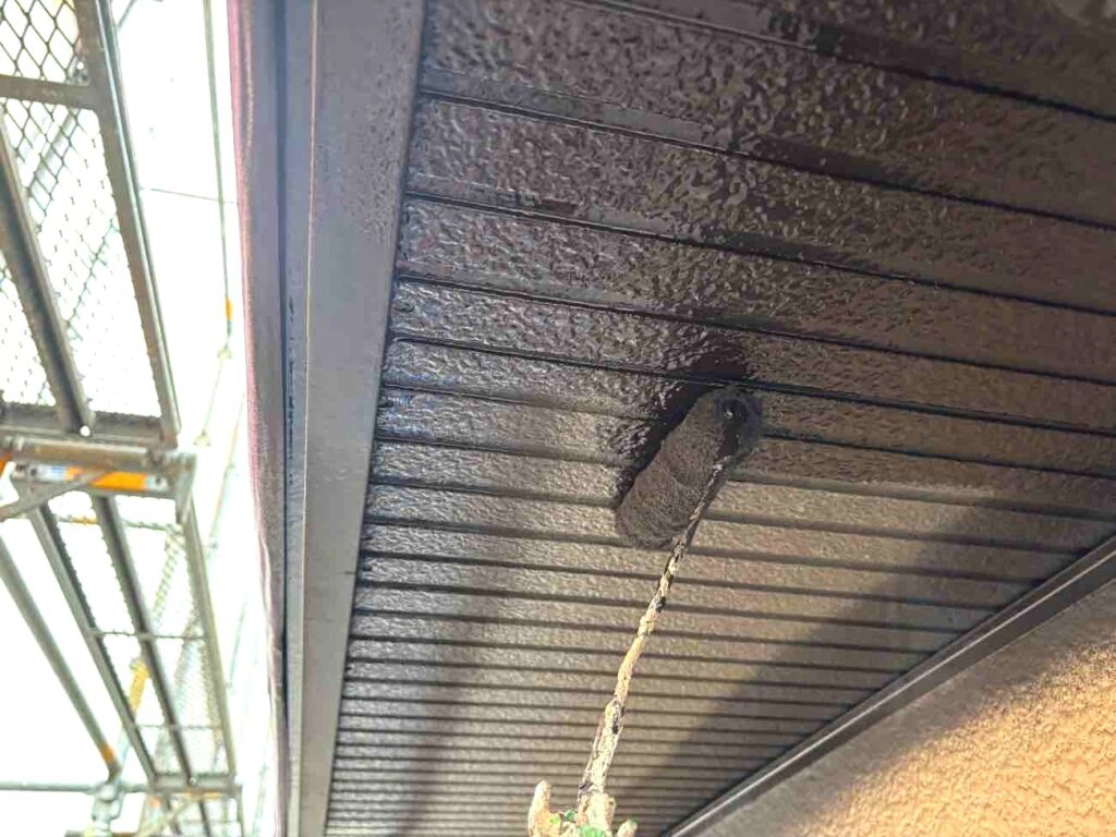 雨戸や破風板、軒天などの付帯部の塗装を行いました。ケレン作業で表面の汚れや古い塗膜を整えてから、下塗り・上塗りで丁寧に仕上げています。細部まで手を入れることで、外壁とのバランスが整い、建物全体の統一感が高まりました。
