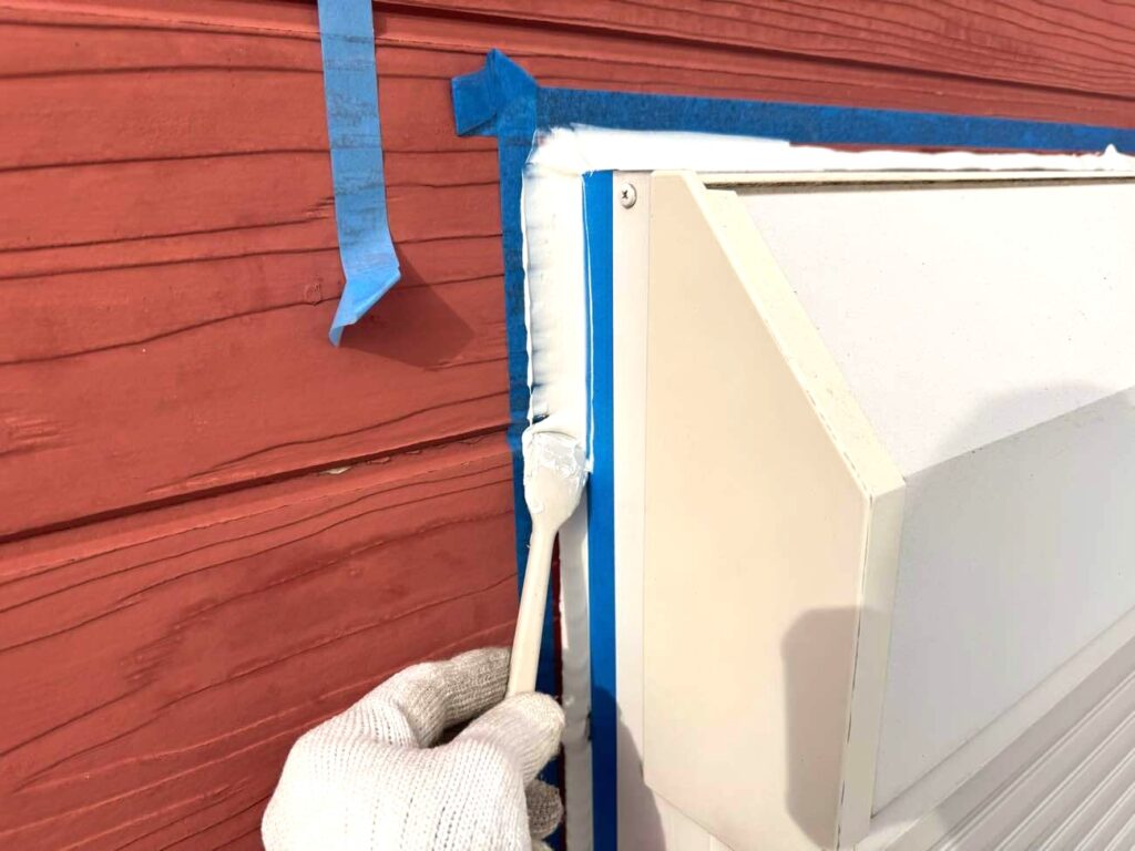 既存のコーキングはひび割れや硬化が見られたため、劣化部分を丁寧に撤去しました。その後密着性を高めるためにプライマーを塗布し、新しいコーキング材を充填。隙間ができないように均一に打ち込み、表面をしっかりならして仕上げています。防水性を回復させることで、雨水の侵入を防ぎ、建物全体の耐久性を高めました。