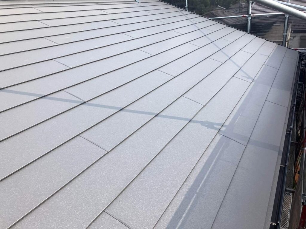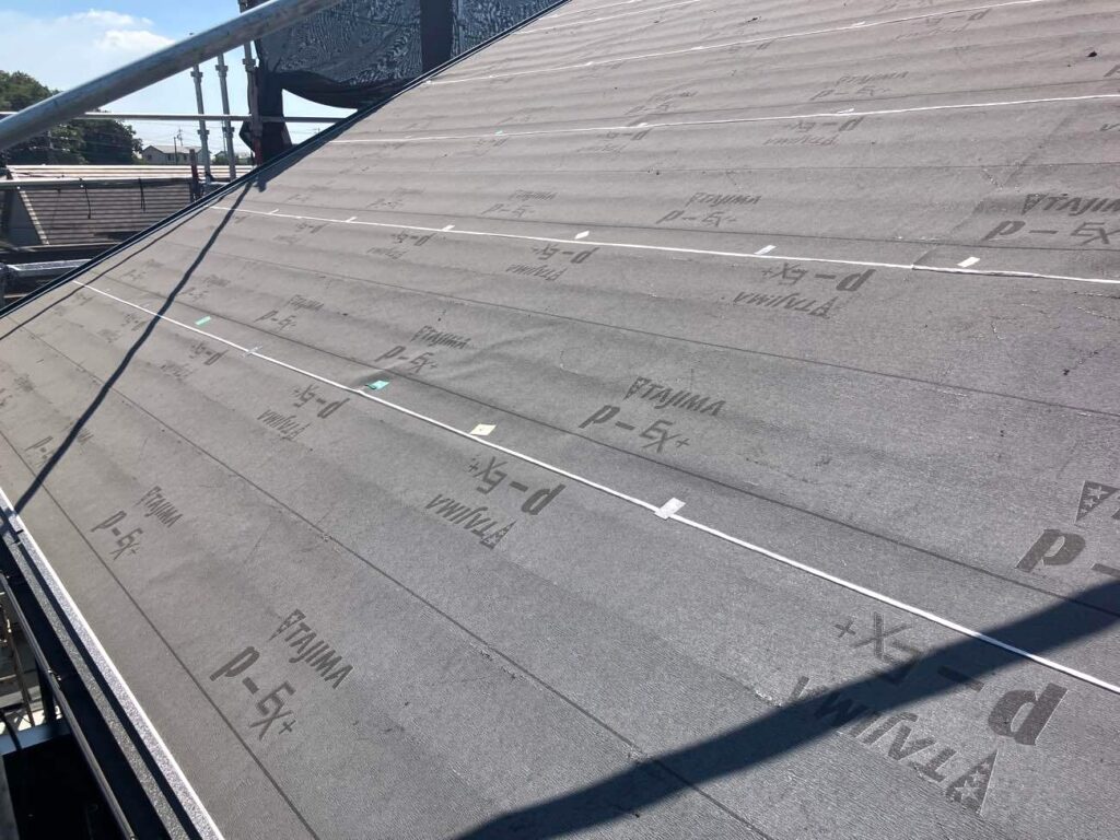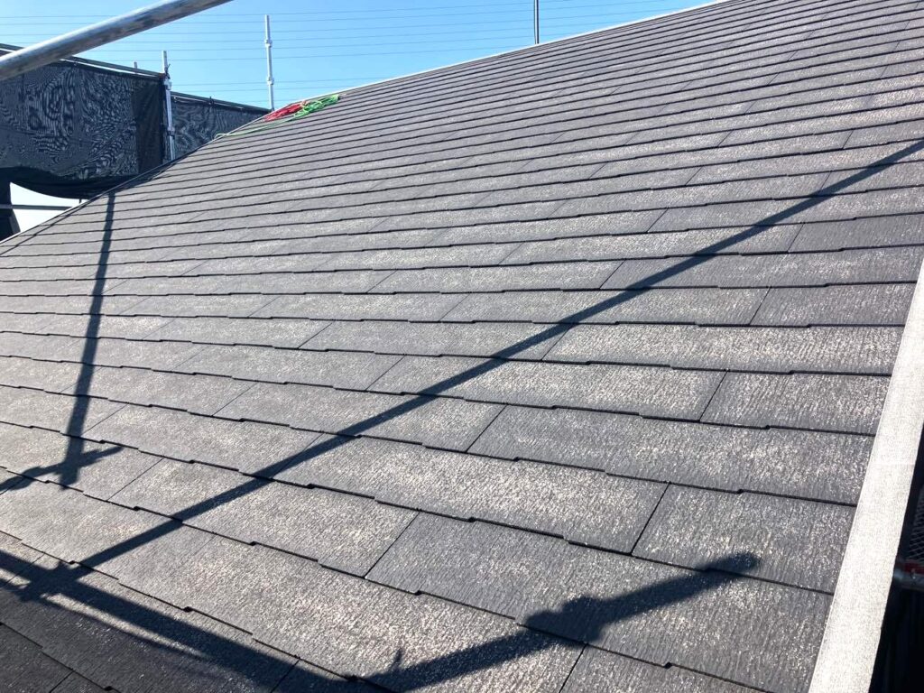 今回の工事では屋根のメンテナンスとして、屋根カバー工法を行いました。屋根カバー工法とは、既存の屋根材の上から新しい屋根材を重ねて施工する方法で、屋根を撤去する必要がないため工期の短縮やコストの軽減が期待できる工法です。まず既存屋根の状態を確認し、防水シート(ルーフィング)を施工したうえで新しい屋根材を設置していきます。これにより防水性能が向上し、雨風や紫外線から建物をしっかりと守る屋根へと生まれ変わりました。屋根カバー工法は耐久性を高めながら住まいの寿命を延ばすことができるため、外壁塗装とあわせて行うことで建物全体のメンテナンス効果を高めることができます。
