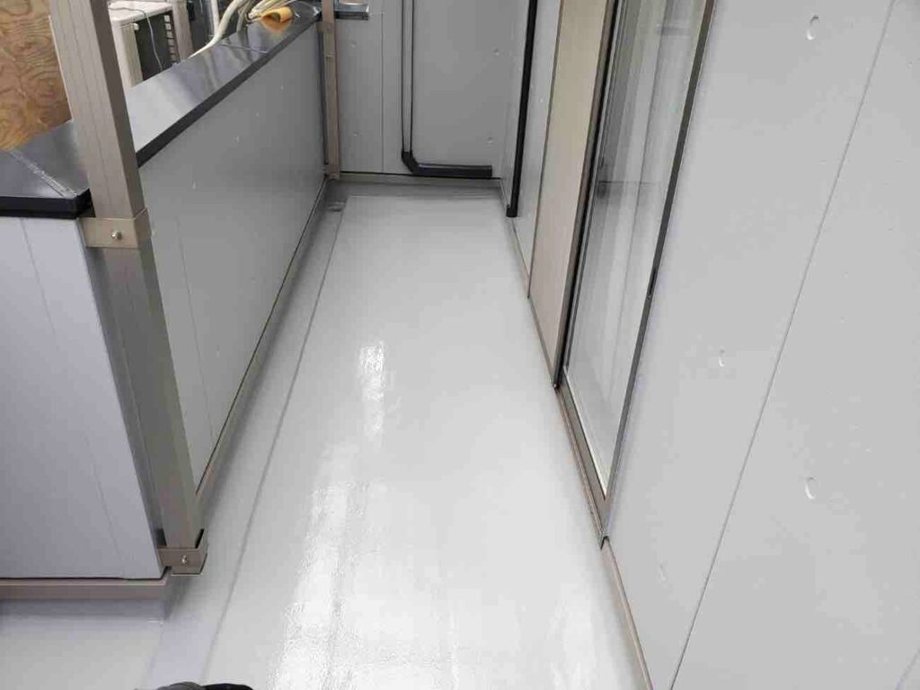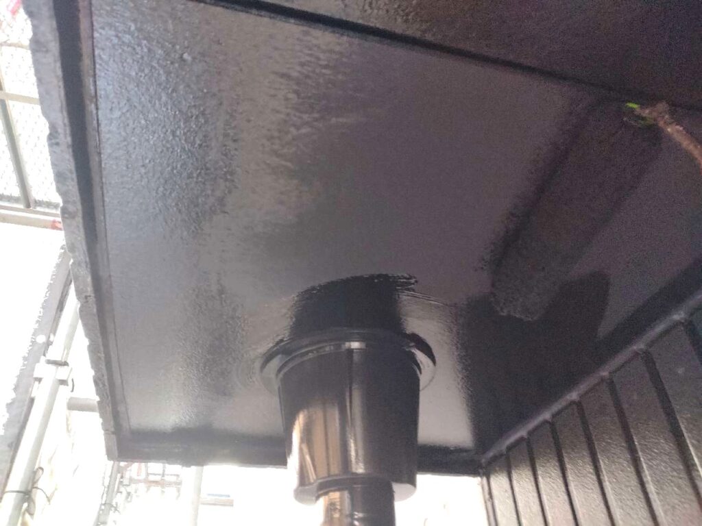 ベランダ部分には防水工事を行いました。ベランダは雨水が直接当たる場所のため、防水層が劣化すると雨漏りの原因になる可能性があります。下地の状態を確認しながら防水材を丁寧に施工することで、防水層をしっかりと形成しました。これにより雨水の侵入を防ぎ、ベランダの耐久性を高めることができます。外壁塗装とあわせてベランダ防水工事を行うことで、建物全体の防水性能が向上し、安心して長く住み続けられる住まいへと整いました。