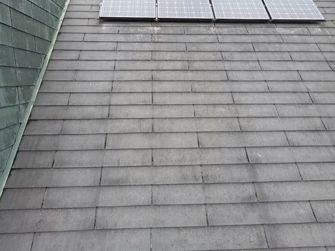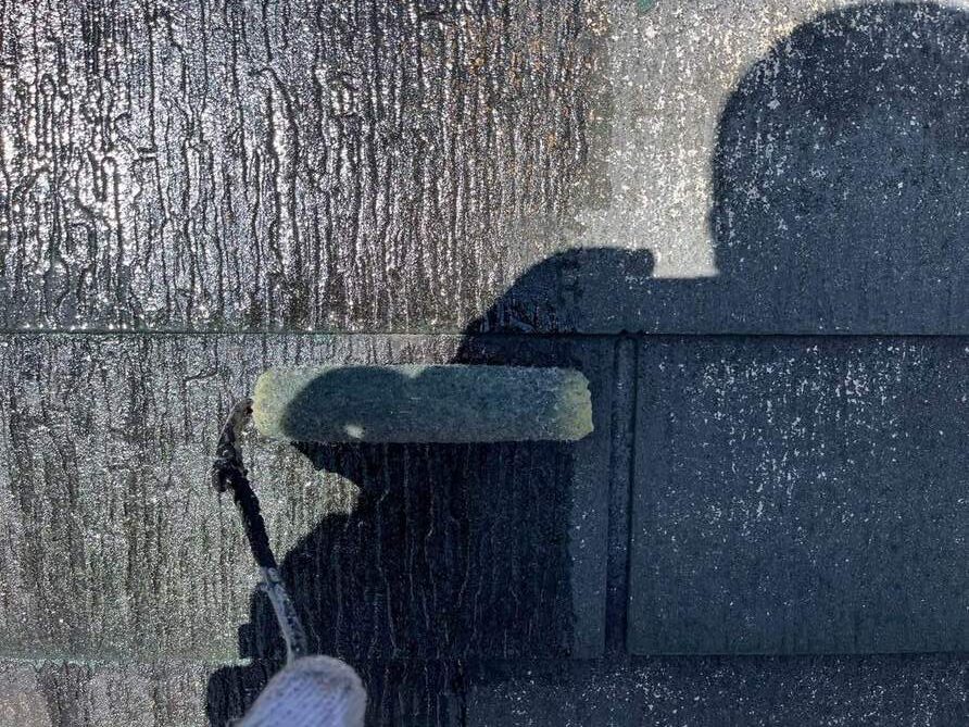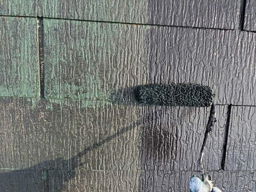 屋根は家の中で最も過酷な環境に晒される場所です。まずは下塗りで傷んだスレートを補強し、中塗り・上塗りで遮熱・断熱機能を備えた「塗料」を肉厚に塗装します。