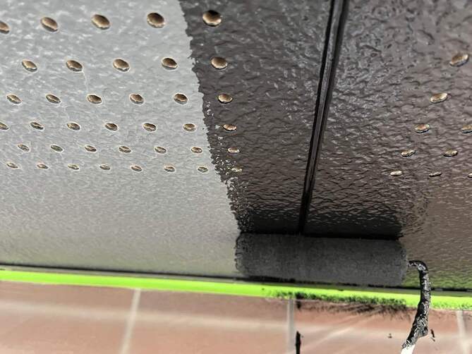 外壁や屋根が綺麗になっても、雨樋や破風板、軒天等の付帯部が色あせていては完成度は上がりません。紫外線による硬化・割れを防ぐため、ケレン(研磨)作業で傷をつけ、塗料の食いつきを良くしてからシリコンやフッ素塗料でコーティングします。