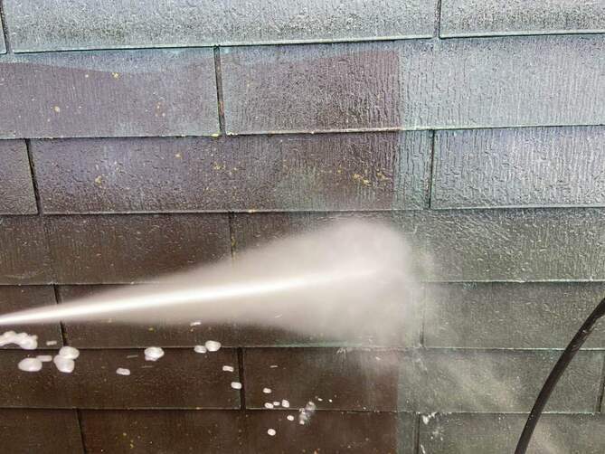 塗装の「持ち」を左右するのは、実は塗る前の下準備です。長年蓄積した苔、藻、大気汚染物質、そしてチョーキング(白亜化)した古い塗膜の粉を、強力な高圧洗浄で根こそぎ除去します。
