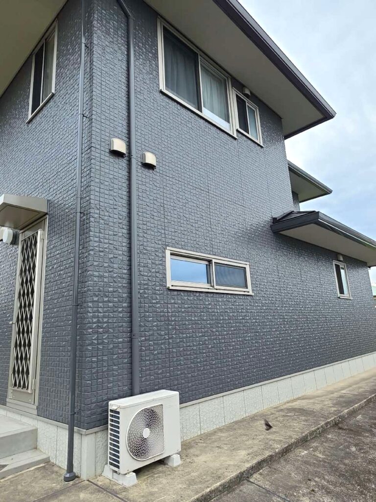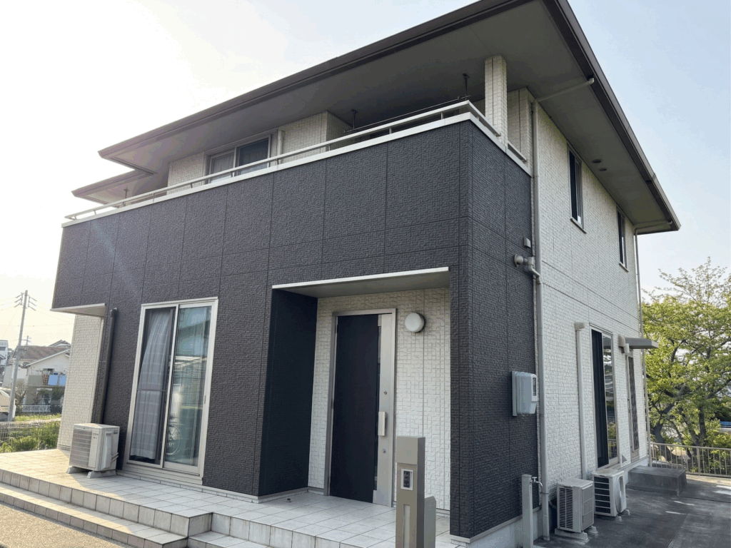 施工前のベージュとブラウンのツートンカラーから一新、落ち着きのあるディープグレーを基調としたモダンな佇まいへと生まれ変わりました。 塗装屋ひらまつが自信を持っておすすめする高耐久塗料を使用し、単なる色の塗り替えに留まらない、住まいの価値を高める「魅せる塗装」を実現しています。 太陽光の下で美しく映える艶感と、周囲の景観を引き締める圧倒的な存在感は、まさにワンランク上の上質住宅。 大切な我が家を、いつまでも眺めていたくなるような自慢の住まいへとアップデートいたしました。