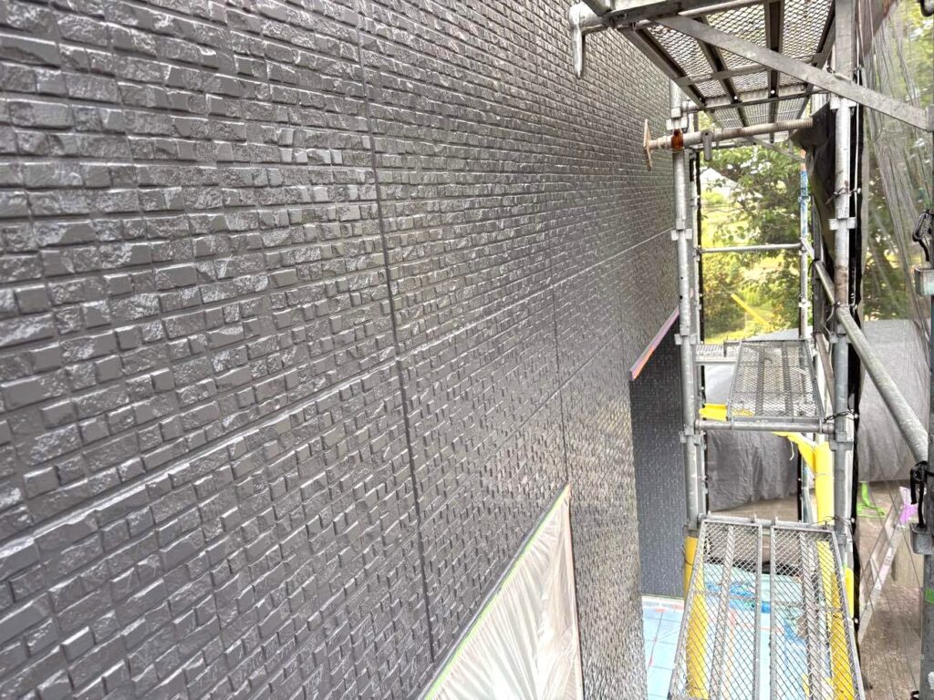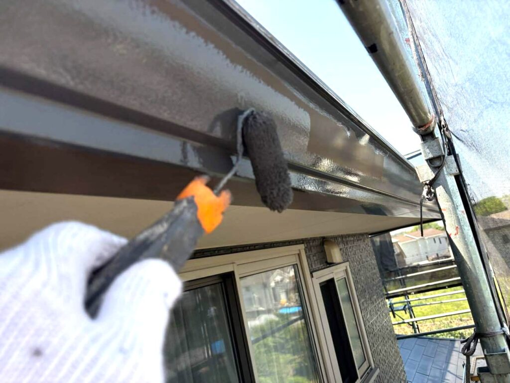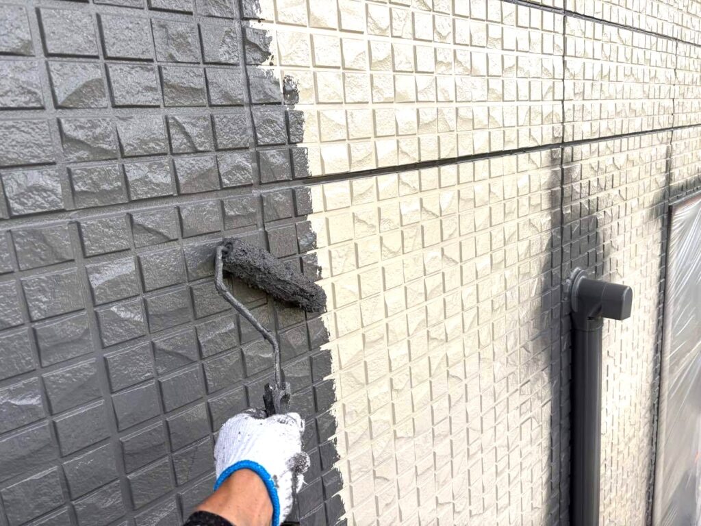 中塗り・上塗り: 今回選定したダークカラーの性能を最大限に引き出すため、規定の乾燥時間を守り、2層に分けて厚く塗装します。