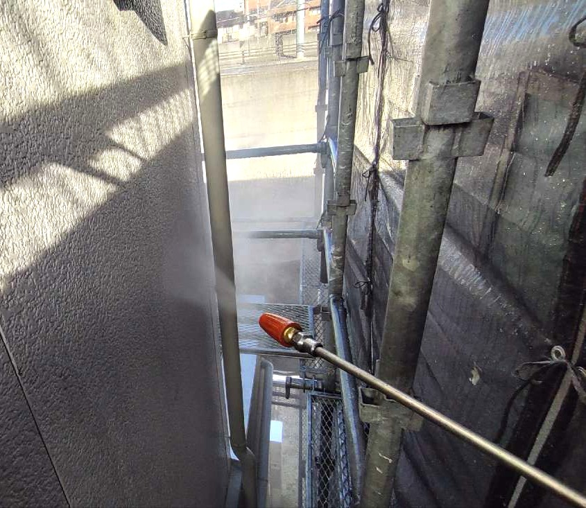塗装の耐久性を決めるのは、実は「塗る前の準備」にあります。当社の高圧洗浄は、単に水をかけるだけではありません。長年蓄積された土埃、カビ、藻、そして古くなってチョーキング(粉化)した旧塗膜を、専用の強力ノズルで根こそぎ洗い流します。この洗浄が不十分だと、どんなに最高級の塗料を塗っても、汚れと一緒にベリベリと剥がれ落ちてしまいます。いわば「お化粧前の洗顔」と同じで、素地を真っ新な状態に整えることで、下塗り材の密着力を極限まで高めます。乾燥時間もしっかりと確保し、水分を完全に取り除いた状態で次の工程へと繋げます。
