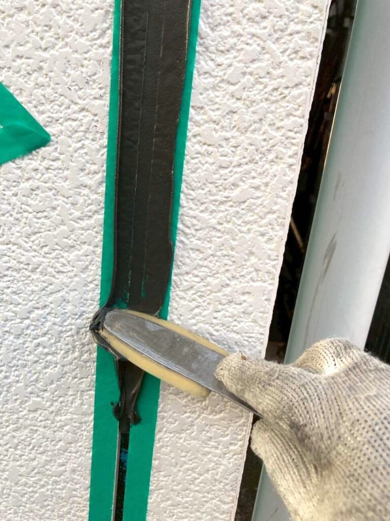 密着力を高めるプライマーの塗布を徹底し、気泡が入らないよう専用のヘラで均一に圧着。隙間からの雨漏りを防ぐ防水性能はもちろん、外壁の色に合わせた最適な材料を選定し、乾燥後の痩せ(肉やせ)が少ない高耐久なシーリング材を使用することで、建物の「動き」に追従する柔軟な目地を形成します。