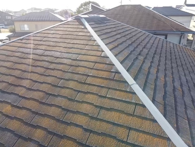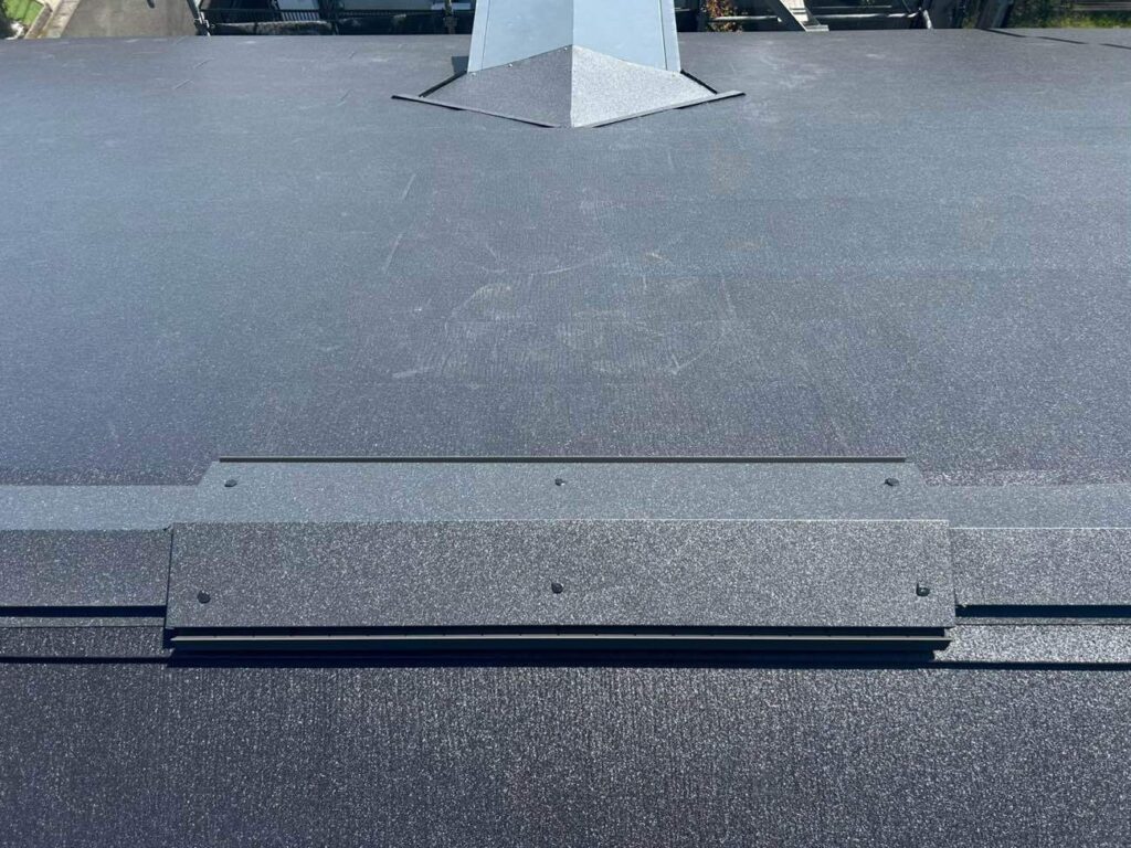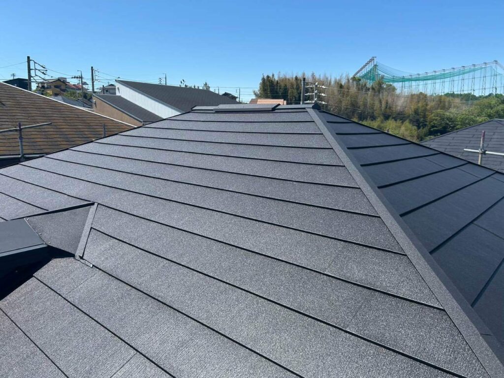 まずは現在の屋根表面にある汚れや苔を清掃し、新しいルーフィング(防水シート)が密着しやすい状態に整えます 。既存の屋根材の上に、高品質な防水シートを下から上へと重ねて敷き詰めます 。これにより、万が一屋根材の隙間から水が入り込んでも、建物内部への浸入を確実に防ぐ「二次防水」の役割を果たします 。防水シートの上から、軽量で耐久性に優れたガルバリウム鋼板などの新しい屋根材を固定していきます 。屋根の頂上部である棟(むね)に板金を取り付け、雨水の浸入を完全にシャットアウトします 。