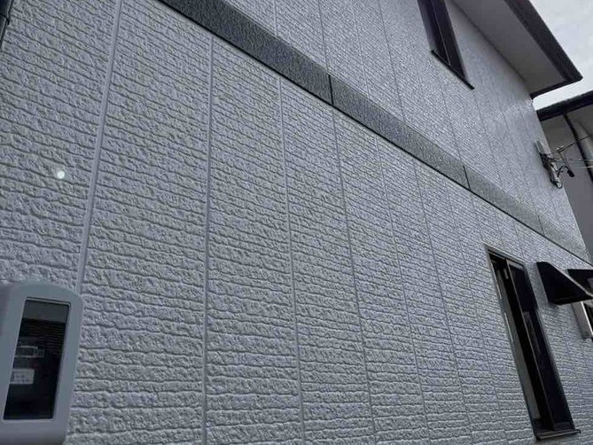 外壁メインをクリアなホワイトにする一方で、幕板や雨樋、破風といった付帯部には艶を抑えたブラックを配置。このカラーバランスにより、建物に立体感と奥行きを生み出しました。機能面では、地震や気温変化による動きに強い高耐候シーリング材への打ち替えをセットで提案し、15年、20年先を見据えた「真の安心」を形にするプランを作成いたしました。