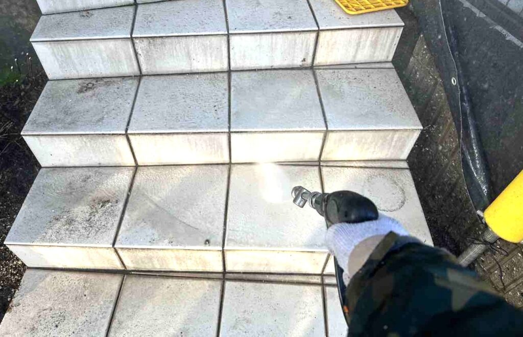 塗装の耐久性を決めるのは「密着力」です 。長年蓄積した苔、藻、チョーキング(古い塗膜の粉)を残したまま塗装すると、数年で剥離の原因となります 。家庭用とは比較にならない15MPa以上の強力な水圧で、目に見えない汚れまで根こそぎ洗い流します 。この徹底的な洗浄が、新しい塗料の性能を100%引き出すための絶対条件です 。