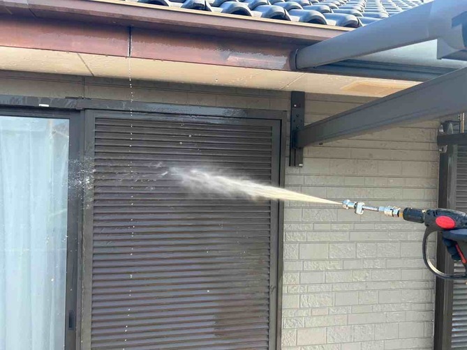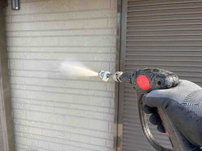 塗装の寿命を左右する極めて重要な工程です。家庭用洗浄機とは比較にならない強力な圧力で、長年蓄積した苔、藻、古い塗膜の粉(チョーキング)を根こそぎ洗い流します。